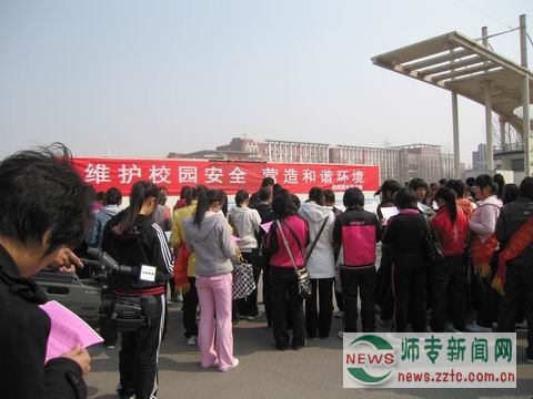 3月26日上午,由我校保卫处与迎宾路办事处合办的以“维护校园安全构建和谐环境”为主题的“安全校园”宣传活动在我校南门口举行。校保卫处老师及校学生会、各系(部)学生会保卫干事近三百名师生参加了此次活动。