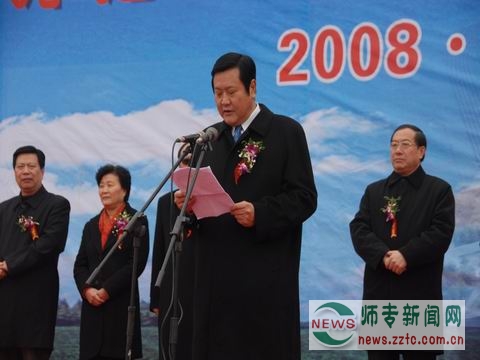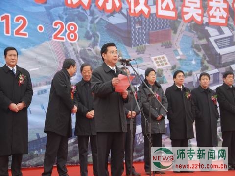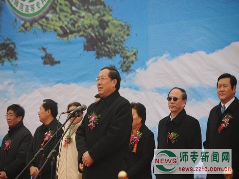 惠济区区委书记张俊峰、郑州市市长赵建才、省教育厅厅长蒋笃运等领导发表讲话。赵建才市长在讲话中肯定了我校六年来取得的巨大成就,他指出,建设一所地方性本科院校是郑州市736万人民的企盼,建设郑州文理学院的设想已纳入市“十一五”发展规划,东校区奠基仪式的举行,标志着郑州市属高等教育向本科目标跨出了又一实质性步伐,对学校进一步扩大办学规模、提升办学层次,对做大做强郑州市高等教育品牌,都将具有十分重要的意义。希望学校坚持高起点规划、高标准设计、高质量建设、高效率运行;希望有关承建单位和监管部门,增强责任感、使命感和紧迫感,周密工程安排,确保工程质量;希望有关职能部门搞好校区建设的组织、协调、指导和监督,使新校区的建设能够顺利进行。蒋厅长在讲话中对东校区的奠基表示祝贺,并对学校提出了明确的要求和希望。