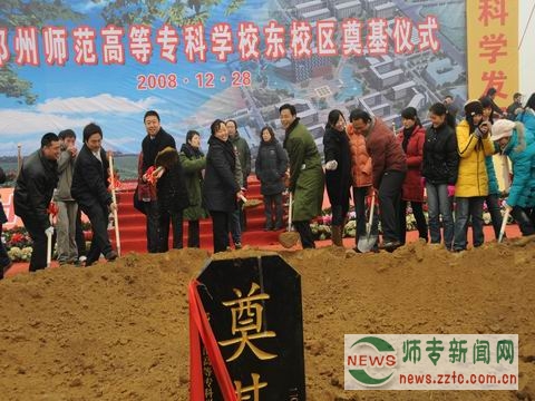2008年12月28日上午10:30,郑州北大学城,银装素裹,彩旗飘扬,热烈而又喜庆,我校东校区建设奠基仪式隆重举行。省市领导王文超、赵建才、蒋笃运、王流章、李柳身、肖新生、李敏、张发亮、雷志、王薇等,兄弟院校嘉宾、学校领导、全体教职工与学生代表近5000人参加了奠基仪式。