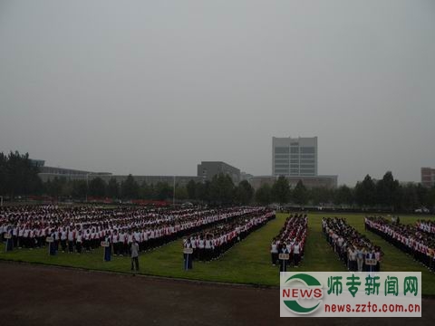 伴随着庄严的国歌声,2008级新生开学典礼暨军训动员大会拉开帷幕。赵健校长首先代表学校全体师生向2008级新生表示衷心的祝贺,并向部队领导和承训官兵表示热烈的欢迎和诚挚的感谢。在介绍完学校的基本情况后,赵健校长语重心长地说道,同学们走入了郑州师专,师专将成为你们治学修身的殿堂,你们在这里将放飞理想的翅膀,在知识的海洋中吸取营养;你们将学会求知,学会合作,学会做事,学会做人。他希望全体新生在师专学习期间能够成为德智体美全面发展的合格人才;成为“自我学习、自我教育、自我管理”的大学生;能够传承“万众一心、众志成城,不畏艰险、百折不挠,以人为本、尊重科学”的伟大抗震救灾精神,传承“更高,更快,更强”的奥运精神;成为遵纪守法、遵章守制的大学生。
