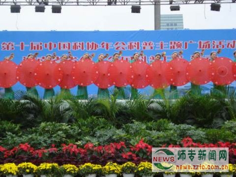 第十届中国科协年会由中国科学技术协会和河南省人民政府在郑州联合主办。科普主题广场活动围绕今年“全国科普日”主题�D�D�D节约能源资源、保护生态环境、保障安全健康,9月18日在绿城广场以5个紧扣主题、特色鲜明、体现全国最高水平的展览、三台文艺节目、一场科普电影呈现给广大市民。我校大学生艺术团在时间紧任务重的情况下,冒雨出色的完成了绿城广场科普主题活动的首场文艺演出。