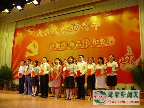 为庆祝建党87周年,6月27日下午,校党委在7号楼学术报告厅举行“讲党性重品行作表率・我为学校管理年活动做贡献”演讲比赛。党委书记于向英、校长赵健等领导出席现场并为获奖选手颁奖。