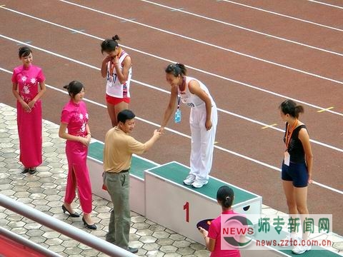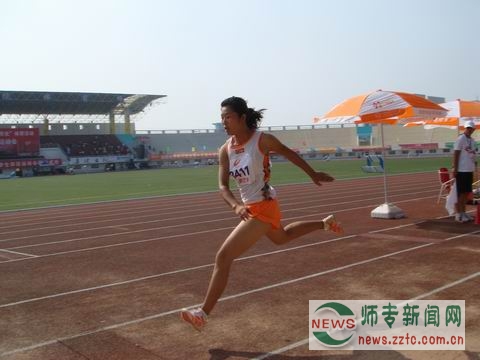 在激烈的比赛中,我校运动员奋力争先,连夺佳绩:杨星同学在第一天田赛的第一场比赛中即以6.68m的成绩勇获男子乙组跳远金牌,这也是自我校参加三届省大学生田径运动会以来夺得的第一枚金牌,实现了我校省级以上重大体育比赛金牌零的突破,极大地鼓舞了全体队员的士气。在随后的比赛中,高媛媛同学冲击大运会纪录(1.59m )未果,最终以1.56m夺得女子丙组跳高金牌;刘彦彦同学以5.28m 获得女子丙组跳远银牌及女子丙组标枪第八名(30.09m);孔令令同学以20.42m获得女子乙组标枪铜牌;郭凯同学以16秒2获得男子丙组110米栏第五名;付燕同学以1分11秒4获得女子丙组400米栏第五名和女子丙组100米栏第六名(17秒9);洪霞同学以32.05m获得女子丙组标枪第七名;董金焕同学以10.86m获得女子丙组三级跳远第七名;陈新亮同学以9分56秒获得男子丙组3000米第七名及男子丙组5000米第八名(18分01秒6)。在最后一天的男子乙组三级跳远比赛中,杨星同学再接再厉,奋力拼搏,以13.58m再次夺得金牌,为我校代表团参加本届比赛画上了一个圆满的句号。至此,我校田径代表队在本届大运会上共获得三金、一银、一铜、两个第五名、一个第六名、三个第七名和两个第八名。另外,杨星、高媛媛、刘彦彦、孔令令、陈新亮五位同学还获得精神文明运动员。