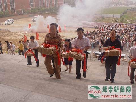 启动仪式由党委副书记、副校长樊豫陇主持,校长赵健同志致辞。赵校长在致辞中说:图书馆是大学的心脏,是完整舒适的文献宝藏体系,总建筑面积达3万平方米的新图书馆是我校教学科研、管理服务的标志性建筑,希望师生以图书馆搬迁为契机,强化管理,科学合理地利用图书馆。接着,党委书记于向英同志宣布:“郑州师范高等专科学校图书馆搬迁正式启动。”