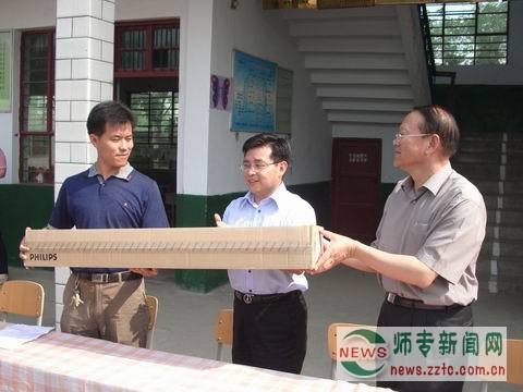 2008年5月22日,我校赵健校长、周静宇副校长到新郑市辛店乡南场小学,看望在那里顶岗实习的学生,并为南场小学带去一批教室照明器材,帮助他们改善教室照明条件。