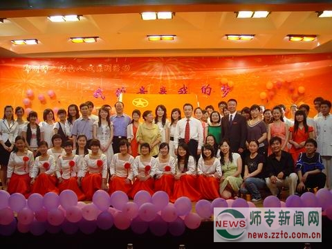 4日晚,我校音乐厅内座无虚席,“我的青春我的梦”主题晚会在这里激情上演。校领导于向英、樊豫陇、周静宇、张建航、孔青等和青年学生一起欢度节日。晚会以诗歌为主线,展现了当代大学生积极向上的精神风貌,表达了同学们喜迎奥运的快乐心情。晚会最后,校领导还上台与学生们一起朗诵了诗歌《祖国,我把青春献给你》和歌曲联唱,把整台晚会推向了高潮。
