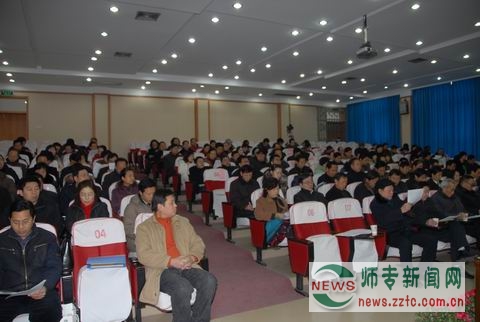 赵校长在《学校工作报告》中从加强和深化干部理论学习与队伍建设、扎实推进“迎评创建”工作、加大学生工作力度、大力开展教育教学工作、着力推动人才队伍建设、继续完善人才培养工作平台建设及进一步加强统战、工会、卫生保健、计划生育和老龄工作等七个方面对过去一年的工作进行了总结。在肯定成绩的同时,指出当前我校发展所面临的机遇和挑战,希望全校教职工一道诚心诚意、脚踏实地,为实现学校“升本”目标而共同奋斗。