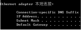 在里面那行路径的最后一个符号“>” 后面输入ipconfig 然后会出现类似如图的情况