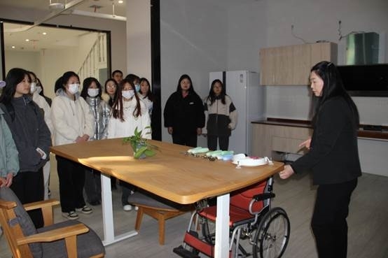 在无障碍体验区,能升降的浴缸、可爬楼的轮椅、全屋滑轨吊椅、自动床铺、智能餐厅等设施设备一应俱全,同学们体验到了通过现代科技对残障人士的关爱,体验到了现代科技带给残障人士生活的巨大便捷。
