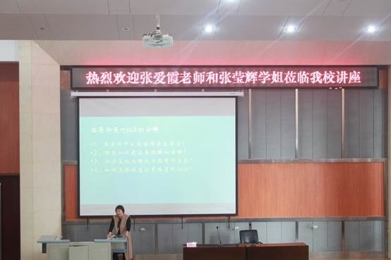 张爱霞的报告主题为《好教师专业成长的有效途径》。张爱霞老师报告从“四有好教师”谈起,从自身多年的教学实践经历出发探讨了好教师应该如何成长,总结了教师专业成长的有效途径是要经过四个阶段:教学—研究—反思—再实践。张爱霞老师的报告内容丰富,有事例,有故事,有理论,有分析,以生动形象、深入浅出的语言极大地拓宽了老师们的教学方法和手段,增强了大家对成为一名好老师的期望,激发了同学们对教师事业的热爱。报告结束后,张爱霞老师积极的与全体师生针对教师教学和学生培养等方面展开了热烈的互动交流。