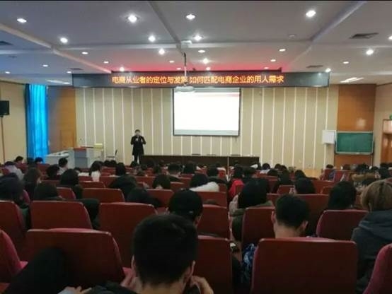 王总首先结合电子商务行业的发展现状,对电子商务行业的各分支方向(网站运营、网店运营、跨境电商和新媒体运营)的市场容量、人才需求、就业形势、发展趋势等方面进行了详细的介绍。其后结合电商各分支方向的特点,指出目前电商各分支的岗位构成以及岗位职责能力要求。接下来,王总以其所创品牌“布蓝图”为例,从市场分析、运营策划、组织管理、方案实施及监督优化等方面分析讲解电子商务运营的过程。然后,对电商的各个岗位(网店客服、网店美工、网店推广和网店运营等)能力、晋升要求以及电商企业用人需求标准进行了分析和阐述。最后为同学们如何快速匹配企业的需求提出了若干建议。