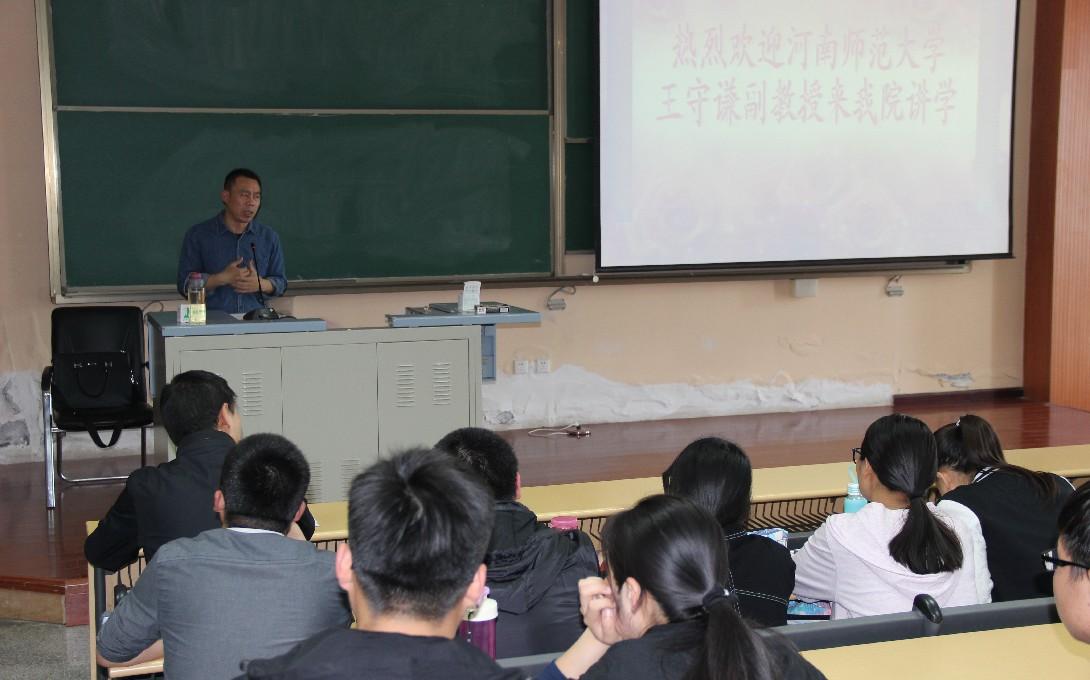 2017年4月18日下午,河南师范大学历史文化学院王守谦副教授在综合教学楼A401教室为我校历史文化学院师生做了题为“史料学:中学历史教师的新挑战”的学术讲座。此次讲座由历史文化学院副院长刘广明主持。