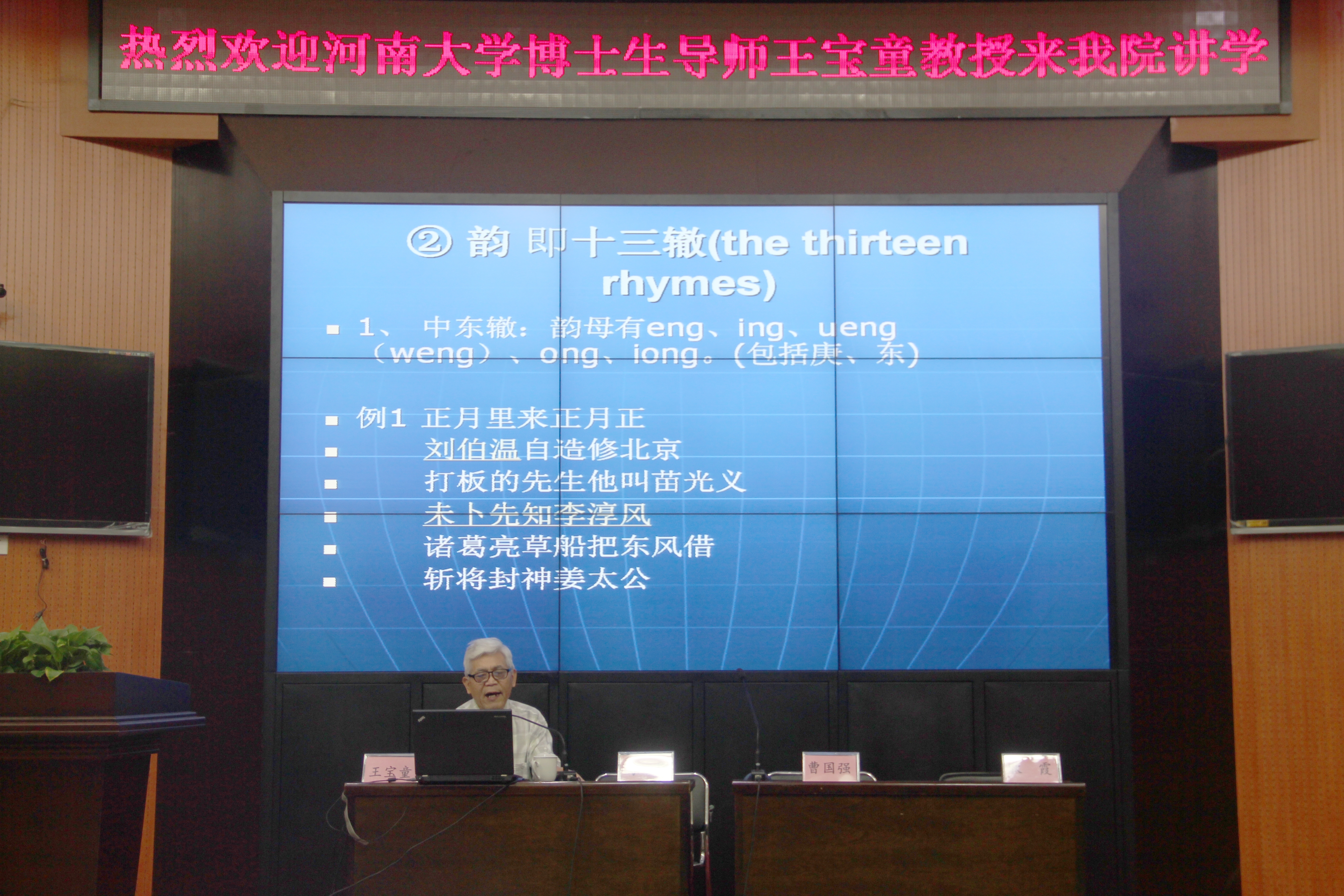 首先,王教授为我们介绍了英文诗歌朗诵的要领。然后,从英文诗歌的韵律与节奏开讲,所讲诗歌内容积极向上,语言流利准确。其中,讲到一首英文诗时,全场观众为之贺彩。讲座结束之际,王宝童老师又为我们倾情演绎了一首 Edgar A. Guest 的 It could n’t be done,全场观众为之鼓掌,都为这样大师级专家的朗诵所倾倒。