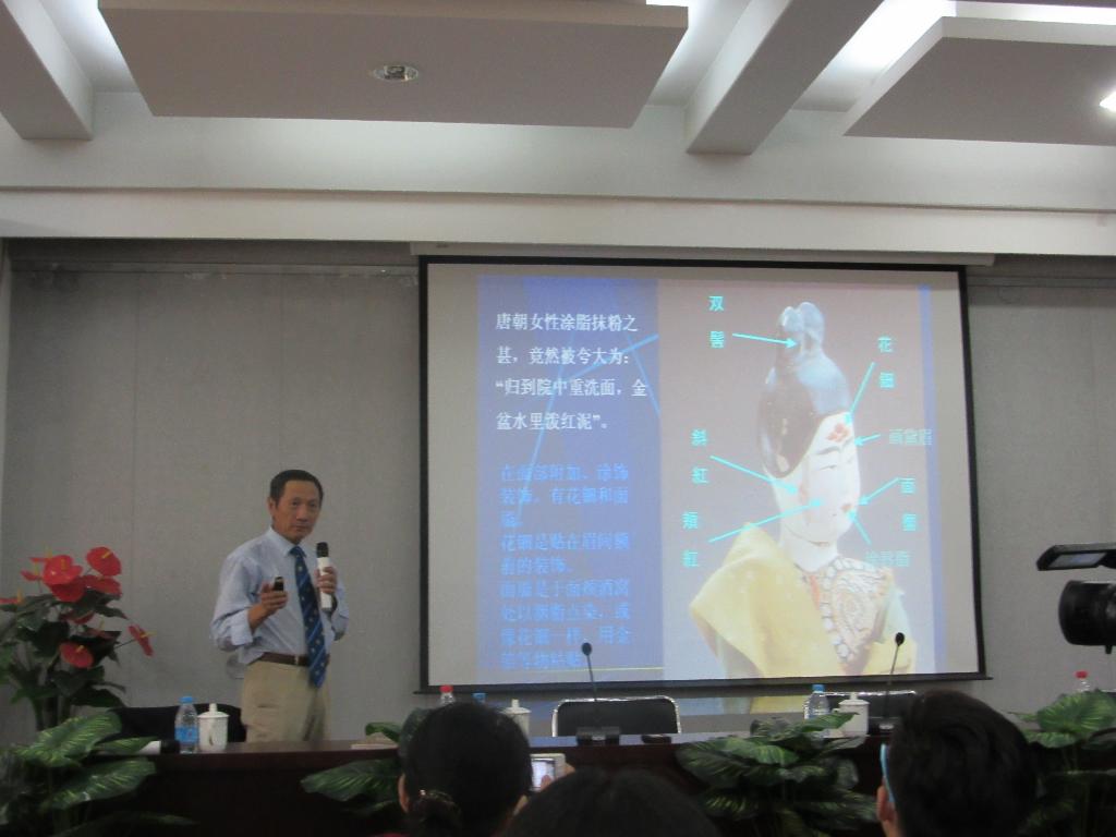 此次讲座的主要内容为浓妆淡抹总相宜——唐代的女性形象。讲座的开始由郑州师范学院文学院团总支书记张航书记作开场介绍。本次讲座的主要参与者为郑州师范学院部分学生及教师,另外还有不少社会各界人士前来观看。虽然观看的人数众多,但也没有影响讲座的正常进行。在齐东方教授的讲演中,大家被他渊博的学术知识以及幽默诙谐的语言风格所吸引。令人值得称赞的是是有些不拘小节之人,居然席地而坐,认真倾听,在现场营造出了一种和谐的学习氛围。