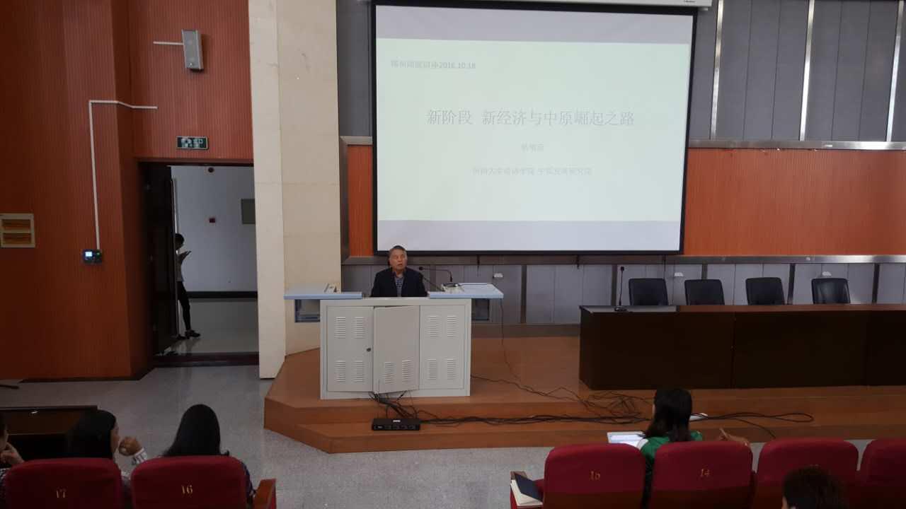 报告中,耿明斋教授从中国经济到底怎么了、从新阶段来认识当前中国经济运行特征、从新经济来寻找中国经济增长的新动力以及中原崛起探新路四个方面对我国乃至中原地区经济运行进行了介绍,并针对我省目前存在的短板,提出了今后我省经济社会发展的着力点。他指出,我国自2008年金融危机以来,我国经济持续下行的态势主要是由于我国投资主导和权力主导的经济增长模式已经走到了尽头、但消费主导的经济增长模式却无法启动等原因造成。因此,现在要以新阶段的视角来解决中国经济增长的问题,经济增长动力由投资专项消费,由外需转向内需,增长源泉由资源开发转为技术创新等等。而中原崛起要探寻新路子,发展新的比较优势,摒弃旧的比较优势,加大教育科技领域改革力度,建设以郑州为中心的大都市,培育大产业,发展大枢纽,要做内陆开放高地。