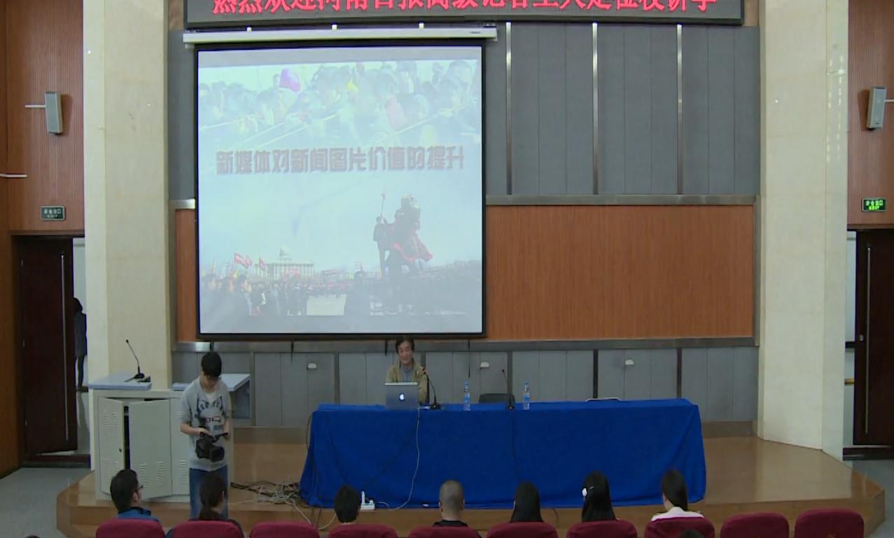 4月21日下午,摄影家、河南日报高级王天定以《新媒体对新闻图片价值的提升》为题,为我院师生讲学。