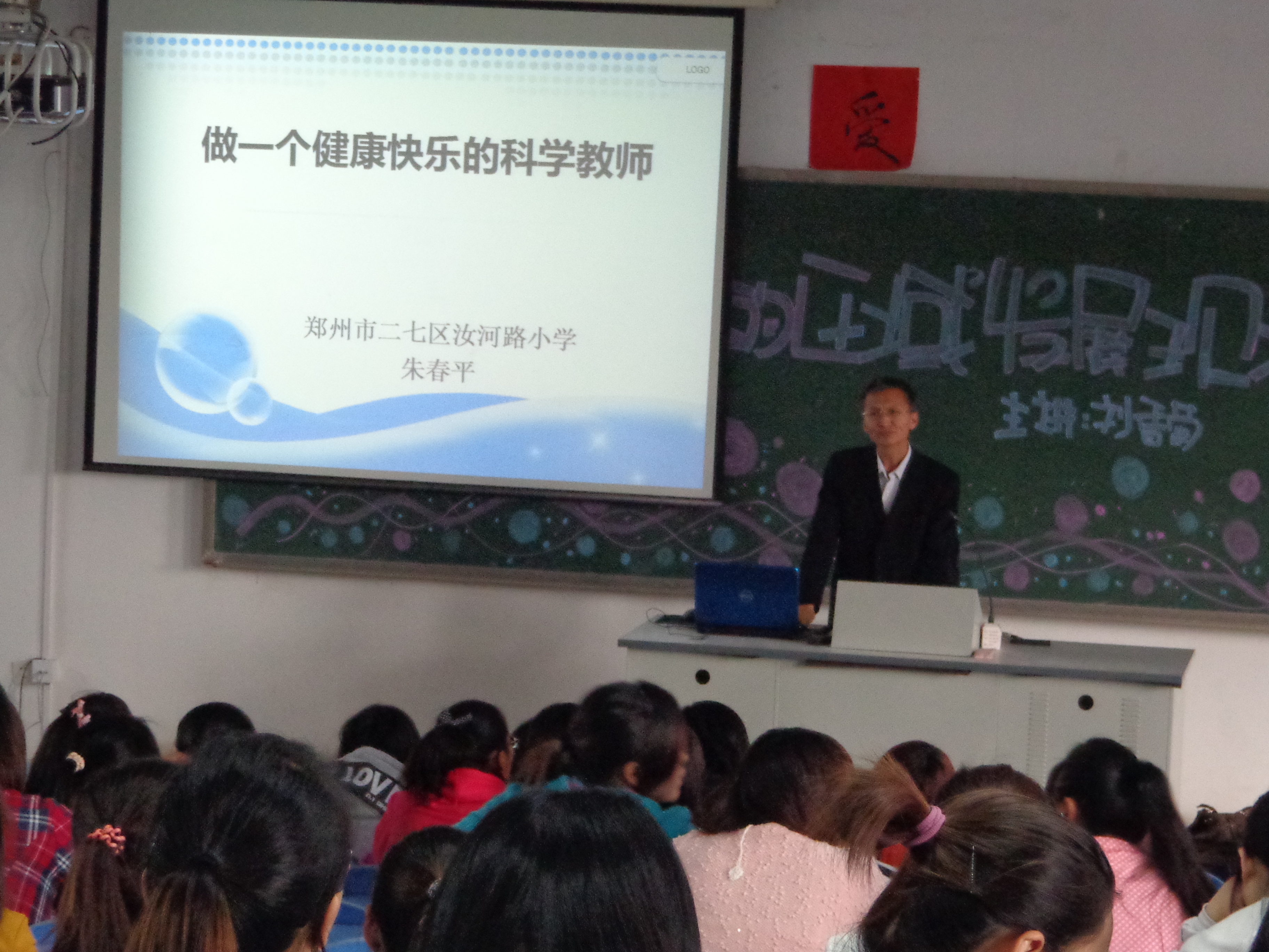 二七区汝河小学的教研员刘香菊、朱春平老师受邀来化学系讲座。参加讲座的领导有化学系主任秦会安、团总支副书记李运涛、教研室副主任毛海荣、王少卿老师以及化学系全体学生。