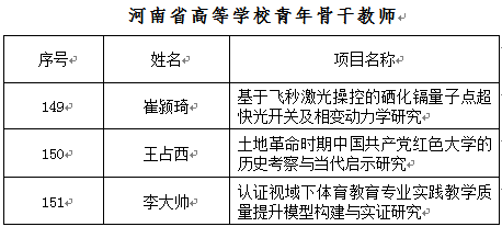 在师资培养方面,根据《关于公布2025年度河南省高等学校青年骨干教师培养计划培养对象遴选结果的公示》,我校三位教师成功入选该培养计划。三位教师的研究为我校相关学科发展与教学改革注入新动能。